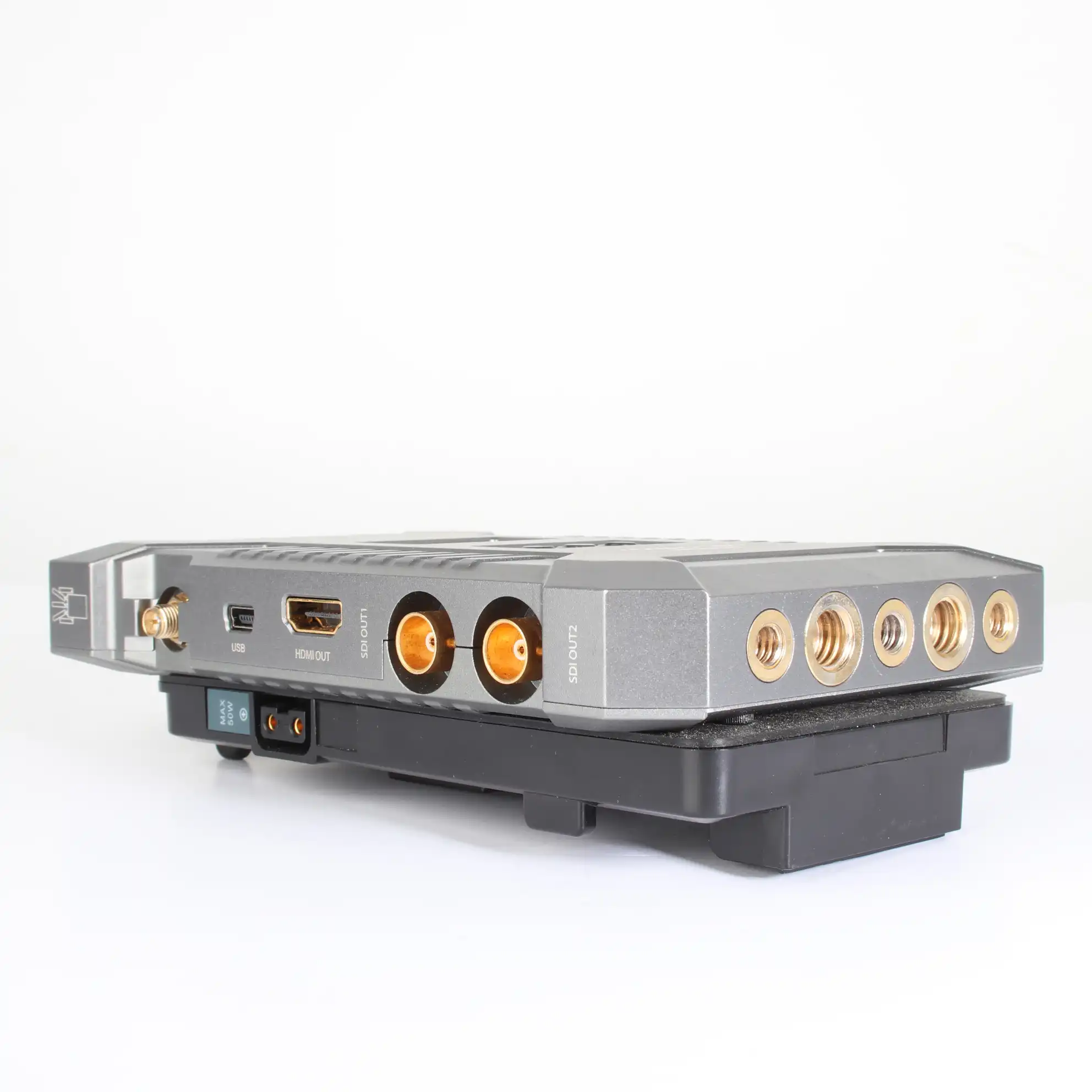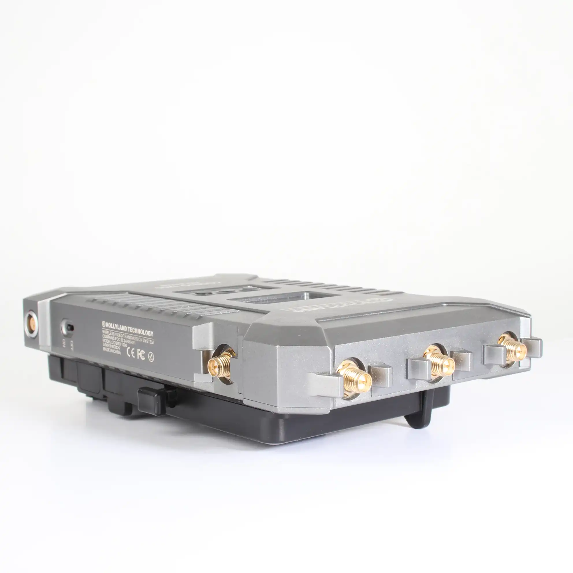 L’émetteur est conçu pour être alimenté via une plaque de batterie de série L ou un connecteur LEMO à 2 broches, et le récepteur comprend une plaque de batterie à montage or et un connecteur LEMO à 2 broches.