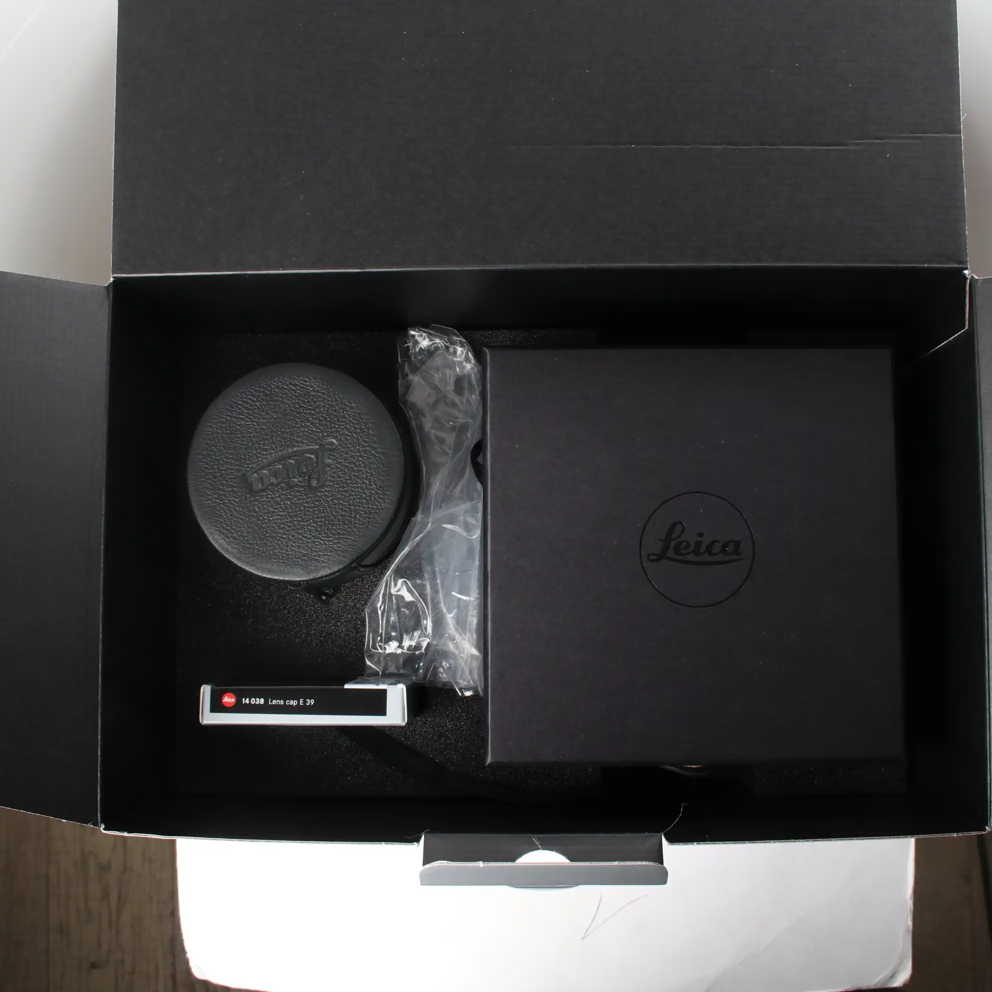 Boîte d'origine, Bouchon arrière optique, Bouchon avant optique, Etui cuir d'origine, Mode d'emploi, Pare soleil